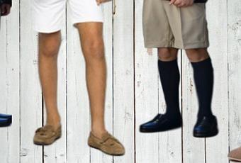 Los niños de la foto 2 van vestidos por UN VESTIDO PARA TI. Por el largo y la tela de la bermuda es un look formal por lo que yo sí pondría unos calcetines altos y calzaría al niño con unos castellanos marino, burdeos -yo se los puse a mis hijos- o, de no encontrar los anteriores, negros.