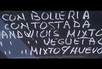El otro día, mientras caminaba por uno de los barrios de Madrid, en una pizarra de una cafetería me encontré con un sándwich muy especial que me llamó la atención y no pude resistirme a hacerle una foto para enseñárosla en esta sección del blog.