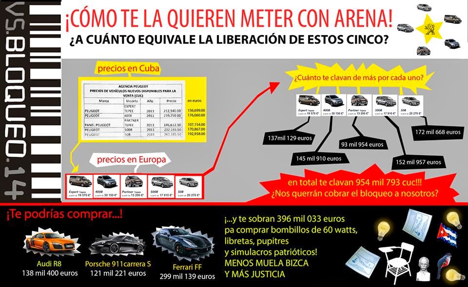 Y para echarle más chicha a la vara de medir cubana, la bomba explotó hace unas semanas cuando por primera vez en 50 años se liberalizó la venta de automóviles de primera y segunda mano. Seguro a más de uno se le estrujó el corazón pensando que algún día podría comprarse un coche, posiblemente cuando tuviera 80 años porque con los salarios de la isla, unos 20 euros mensuales, y los precios de los coches no le alcanzarían dos vidas para pagarlo. A lo mejor lo liberalizan por la libreta de abastecimientos –o cartilla de racionamiento– si el comprador se compromete a que sus nietos pagarán parte del coche. Toda la vida hablando del consumismo del capitalismo y resulta que en Europa sale más barato adquirir un auto que en Cuba. El país de las maravillas, lo llama mi papá y no se equivoca, la pobre Alicia se hubiera vuelto loca entre tantos laberintos.Cada cual defiende su cortijo, pero cuando tu techo es de cristal hay que pensar dos veces qué vas a decir del vecino. La sabiduría popular siempre presente y ayudándome a discernir entre tanto ego enfrentado y enfermo, hasta con el mío.