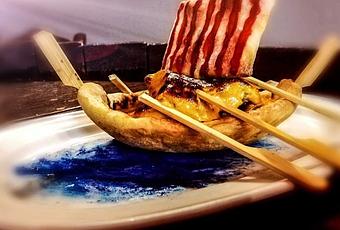 Su última creación, con la que ganaron la edición local en 2019, lleva por nombre “Drakar el tesoro de los vikingos”, y pretende destacar los productos que los pueblos nórdicos trajeron a España en la época medieval, como el bacalao. Esta recreación de un barco vikingo a base de galleta de pan rellena de bacalao acompañado de una emulsión de ajo, es totalmente comestible a excepción de los pequeños palos que sujetan el montaje. Incluso la vela, que esta rellena de salmón, trucha y bacalao ahumado, y el mar donde se asentaba, teñido con pintura comestible.