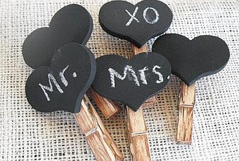 Los ejemplos de las fotos los hemos visto en dazzlingexpressions, una tienda en Etsy, en la que venden los detalles con "acabado" pizarra y muchísimas más cosas bonitas. Una de ellas son estas preciosas bolsitas para San Valentin.... (que no me puedo resistir a ponerlas aquí, aunque el post sea de otra cosa ;-))