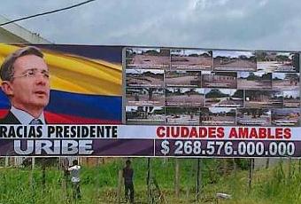 Sin embargo, fue recibido con estas vallas de seguidores del expresidente Álvaro Uribe, en las que le agradecen por su gestión en ocho años de Gobierno.
