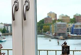 La fotografía está tomada desde un interior en el que prevalecen los elementos de reminiscencias exóticas, unos tipicos portavelas árabes que imprimen calidez al exterior, las gélidas aguas de Estocolmo.
