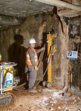 El otro día desde 2PE Fonaments en Petits Espais me envían la foto de abajo donde puede verse como un operario realiza un micropilote de diámetro 130 mm en el interior de un sótano en Barcelona, utilizando un equipo de muy reducidas dimensiones y eléctrico.