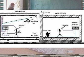 Las cámaras de transmisión horizontal están formadas por dos recintos (emisor y receptor) completamente desacoplados entre sí. Las cámaras deben cumplir los requisitos establecidos en la norma UNE-EN ISO 140-1:1998. en el siguiente croquis se muestra un ejemplo de cámara de transmisión.