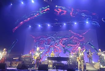 Y salió a escena Crowded House de una manera curiosa, el músico que tocaba el bouzouki apareció con una linterna estilo antiguo y su maleta del instrumento, y se puso en su lugar, a su vez iban entrando uno a uno el resto de miembros con sus respectivas linternas que fueron colocando en sus pies de micros la mayoría y para empezar con el primer tema. Del disco Gravity Stairs que presentaban cayeron Teenage summer, Oh Hi, Black water, White circle, Thirsty, The Howl y ya en los bises Some greater plan (for Claire) canción que dijo Neil que estaba dedicada a su padre. De su anterior disco Dreamers are waiting escuchamos To the island (me hubiera gustado escuchar alguna más). De sus discos antiguos y más conocidos, los de la primer época, fue muy repasado el Together alone (mi favorito) del que escuchamos Fingers of love (magnífica), Private universe, Pineapple head y Distant sun (maravillosa). De su disco más famoso, el mítico Woodface cayeron Weather with you (primer tema del concierto), Fall at your feet (tremenda), Whispers and moans (sorprendentemente genial), Chocolate cake (brutal), Four seasons in one day (absolutamente brillante) y ya en los bises It's only natural. De sus dos primeros discos también hubo temas, del primero homónimo el World where you live y cómo no Don't dream it's over con Neil interpretándola al piano y de Temple of low men las canciones When you come y en los bises como cierre Better be home soon. Decir que como muy agradable sorpresa sonó el Meassage to my girl de la banda Splint Enz en la que Neil empezó en la música con su hermano Tim Finn.