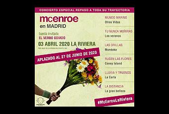 McEnroe anuncia una nueva fecha en Madrid donde repasar toda la trayectoria de la formación. McEnroe tenia previsto actuar en La Riviera el día 3/4 pero este concierto se aplaza, debido al Covid-19.