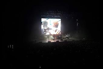 Servidor va tirando pero todavía sigue cojo, así que me agencié una entrada general de grada (sin numerar) para poder verlo todo sentado a plena satisfacción. Y no se crean que fue muy sencillo llegar al asiento, las localidades netamente inferiores estaban ya ocupadas cuando llegué y hube de subir un cierto tramo. Afortunadamente, a pesar de la pendiente y estrechez de las escaleras, llegué a mi asiento sin partirme la crisma aunque con un notable sofoco. Cuando estaba a punto de comenzar el concierto, y mientras muchas personas todavía hormigueaban en busca de birra o viandas, se apagaron totalmente las luces de la Plaza (o Palacio) durante unos dos inquietantes minutos en los que las personas que no estaban aposentadas hubieron de hacer una mezcla de funambulismo y espeleología (usando el móvil como luz) para llegar a sus localidades.