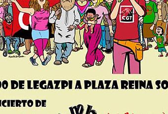 Como ya es tradicional, la CGT celebra este 1 de Mayo un concierto al finalizar la manifestación en Madrid del sindicalismo combativo que comenzará a las 12:00 horas en Legazpi y finalizará frente al Museo Reina Sofía.