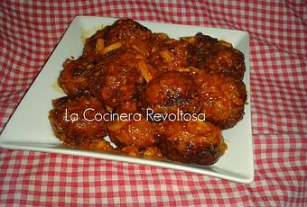 La primera receta viene de la mano de Lorena, La cocinera revoltosa, que quiso preparar las albóndigas en salsa DPM que tienen su historia...Me alegro de que tu primera vez haya sido conmigo jijijijiji.