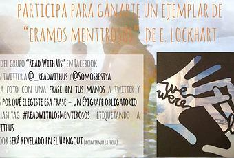 La idea es escribirse una frase que los identifique en este momento, que tenga algún significado para ustedes o que simplemente les guste en las manos, lo cual E. Lockhart promocionó hace ya un tiempo. Pueden ser frases de lo que quieran, no necesariamente tienen que ser literarias. Incluso pueden ser de Damas Gratis o Lali Espósito, acá no juzgamos... mucho (?)Esa foto la tienen que subir a Twitter junto con "Estoy participando por un ejemplar de Éramos Mentirosos en @_Readwithus #ReadWithLosMentirosos". Tienen que estar siguiéndonos a la cuenta del bookclub y a @SomosBestYa en Twitter... ¡y listo! ¡Ya están participando!Como bonus, si quieren, pueden subir sus fotos a Instagram junto con un epígrafe de por qué eligieron esa frase y etiquetar a la cuenta del bookclub (@readwithusfanclub)... ¡vamos a estar reposteando todas las fotos! Queremos saber qué los motiva a elegir la frase que vayan a elegir, queremos saber qué los apasionaEmoticón smil¿Quieren ejemplos?Mirá la foto de Flor (https://www.instagram.com/p/BEFPweXvUqt) o Mi foto (https://www.instagram.com/p/BECeY7VPUsI) e inspirate para crear tu propia foto