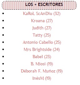 4.- PUNTOS EXTRAS (No obligatorios) Por estar en el top de comentaristas: +5 puntos Por Comentar en la entrada de la reseña del libro: +5 Por seguir a Rita Morrison en Bloguer:+5 Entrada en tu blog anunciando el concurso y enlazando a esta entrada: +5 puntos Banner (especificando el lugar): +3 Compartiste en Facebook o twitter:+2 c/u ¿Me sigues en facebook o twitter?: +1 c/u