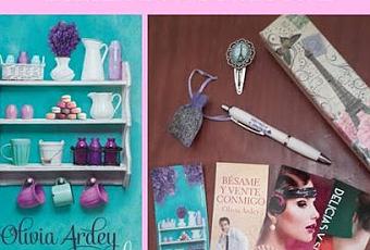 Juego marcapáginas firmados + horquilla París + cajita París + bolígrafo "Las chicas happys de Olivia Ardey + bolsita perfumador lavanda.