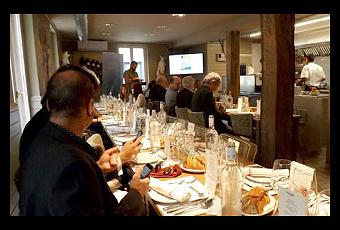 Profesionales de la gastronomía y representantes institucionales de Bilbao acuden al acto en el que se sirvió un menú preparado por el chef Paul Ibarra
