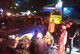 De acuerdo con testigos, el conductor de la camioneta manejaba a exceso de velocidad y de forma temeraria, cuando perdió el control y terminó arrollando a un repartido de comida, causándole fractura grave en una de sus piernas.