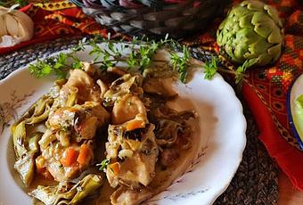 En una entrada anterior os comentaba que este año habían llegado aquí unas excelentes alcachofas así que he hecho muchos platos con ellas, ahora ya hay muy poquitas, pero este año disfruté de ellas a lo grande.En la receta de hoy, además de mis adoradas alcachofas está el conejo, una carne que me encanta, ya se que cuenta con muchos detractores, pero ya sabéis que el pollo y el conejo, admiten las mismas recetas. Para mi es una carne que podría comer cada día, me sienta de maravilla y me gusta una barbaridad.Ah... y frío también está muy bueno, porque estos días el calor aprieta.