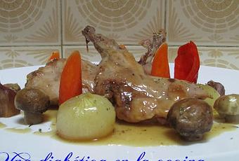 Conejo asado al horno con verduras