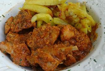 - Añadir la picada al guiso y dejar que se tueste bien con un chorro de brandy. Cocer hasta que esté tierno, y si hace falta, añadir un poco de agua.