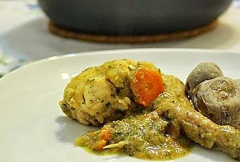 INGREDIENTES (para 4 personas): un conejo entero troceado, una cabeza y media de ajos, un manojo de perejil, un vaso pequeño de vino blanco, aceite de oliva, sal, orégano, romero, agua, harina, un codo de pan, laurel, 4 zanahorias medianas, un puerro en tiras y 8 cebollas pequeñas.