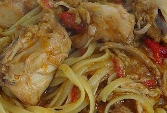 - Añadir unos tallarines secos, y dejar que cuezan hasta que estén al dente.