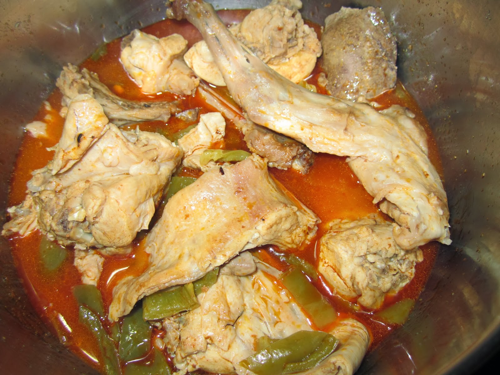 Añadimos el vino blanco y cerramos la olla, ponemos menú CARNE 15 minutos en válvula cerrada.Cuando termine despresurizamos manualmente y tenemos nuestro plato de conejo guisado con pimientos.Es un plato muy ligero, especial para dietas.