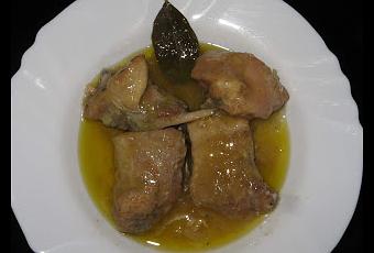 Ingredientes:- 1 kilo de conejo troceado.- 2 cabezas de ajo.- 10 hojas de laurel.- 2 puñados de pimienta negra.- Aceite de oliva virgen extra.- Vinagre de vino.- Agua.- Sal.Elaboración:Cogemos una olla y comenzamos con el escabeche, por cada vaso de aceite añadimos uno de agua y dos de vinagre. Si lo probáis y veis que está muy fuerte añadís algo más de agua, lo importante es que la carne quede cubierta.A continuación, se añaden los ajos pelados, el laurel y la pimienta. Se echa la carne salada y cuando veamos que está bien cubierta la ponemos a fuego medio durante una hora y media. Una vez pasado este tiempo se puede consumir, aunque lo mejor es que se enfríe y consumirla días después.