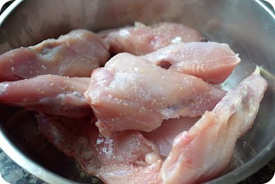 Sazona los muslos y pon ajo granulado o en polvo. Déjalos reposar durante una 1/2 hora.