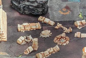 La verdad es que no tienen mala pinta y algunos elementos son perfectamente usables para W40K sin retocar apenas. Sobre todo, a mi me gusta el templo de las columnas cuadradas.
