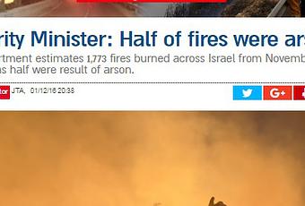 el Cuerpo de bomberos israelí estima que entre el 18 y 26 de noviembre se produjeron 1.773 incendios en todo Israel. De ellos al menos la mitad fueron provocados.