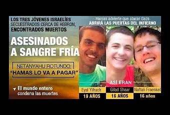 El pasado 24 de julio fue publicado por El Ciudadano y reproducido en blogs, que el periodista alemán Christian Sievers, tras una minuciosa investigación, develó en el programa “Auslands Journal”, de la cadena de televisión alemana ZDF, que el asesinato de los tres jóvenes israelíes el pasado 12 de junio fue un crimen civil cometido por un ciudadano de Israel por asuntos económicos.