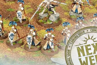La semana que tiene tenemos la caja de ejército de los Lumineth de AoS, que será de edición limitada. Mas adelante se venderán sus componentes por separado, aunque hay ciertos componentes exclusivos de esta caja. Es como un Start Collecting, pero en plan de lujo (Y así costará). Me hubiera gustado que llevase mas miniaturas, como por ejemplo, unos Arqueros o algún personaje mas. Por cierto, la portada del Battletome me gusta, pese a que sigo viendo raros elfos con cuernos y martillos.