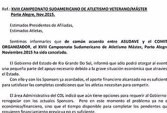 Confirmado : Suspencion del Sudamericano Master de Atletismo WMA
