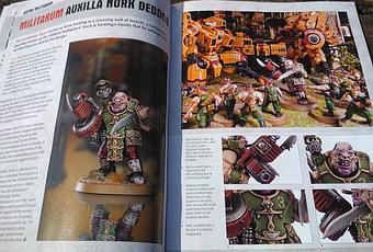 Gracias a Richard French,del grupo Warhammer 40k de FB,tenemos ya la confirmación en forma de imágenes de la WDW de que Nork Deddog tiene nueva figura de plástico con casi total seguridad.Cuando se filtraron las primeras imágenes de los nuevos Ogretes,una de las que salió fue esta.Y la gorra de comisario que lleva en el hombro me pareció pista suficiente hace mas de un mes para saber que tenia una nueva figura lista.Acorde con su trasfondo y su importancia han retocado su apariencia y su figura.Si bien el rostro no es precisamente muy inspirador que digamos y el subdestripador tiene un tambor un poco excesivo,pero el detalle de la armadura de caparazón que lleva,una versión gigante de la de un Tempestus nuevo,me parece un detalle bueno y adecuado para remarcar que Deddog es un ogrete muy especial.Esta es la segunda figura que tiene y la primera que no es de metal.Creo que la que había hasta ahora no se llego a pasar a finecast y se dejo de metal.Es esta: