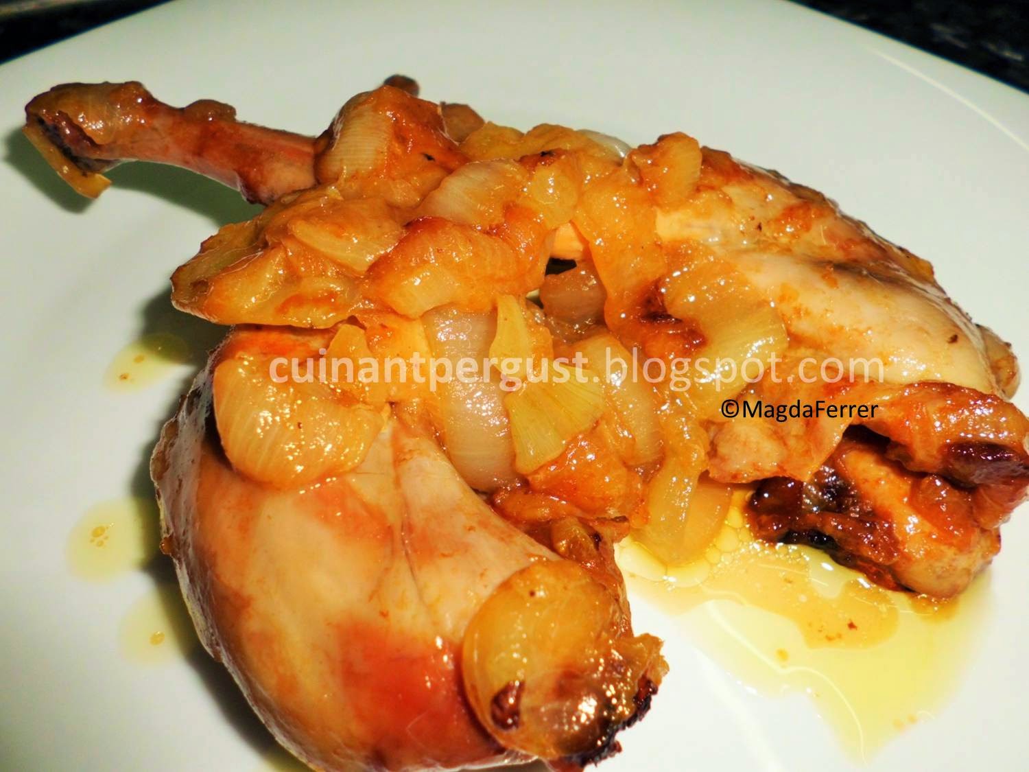Ingredientes:Conejo troceado (en este caso espalditas)2 cebollas grandesSalAceite de olivaElaboración: