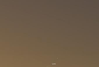 Arriba: Simulación del cielo en Buenos Aires a las 20:30 hs. del día 26 de diciembre de 2011. Crédito: Stellarium/Espacio Sur.El evento podrá verse hacia el atardecer, cuando Venus comience a brillar. La Luna estará ubicada a 6 grados a la derecha.