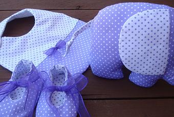 Baberito , zapatitos y elefante sonajero ,todo de la talla de 0 a 3 meses.