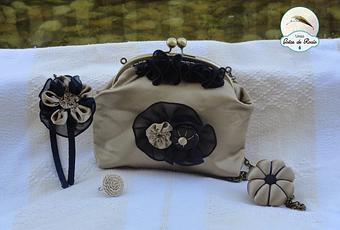 Carmen me contó que va a ser madrina en una boda y que su familia le insistía para que llevara algo en la cabeza, pero ella se resistía, nada le convencía, buscaba algo más sencillo. Al ver mis flores de tela pensó que algo así sí le gustaría llevarlo, algo que no destacase, pero que le acompañase. Luego se animó a pedirme un broche para ponérselo en el cinturón del vestido, y por último un bolsito con boquilla.