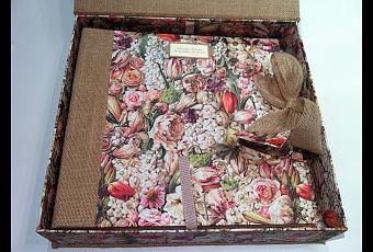 Conjunto de caja y álbum de fotos en tamaño 32x32 para las fotos de una boda