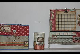 Y, ya puestos, me pusé a dar un cambio de cara a este atril, además de preparar también un bote para bolígrafos. Unifiqué todo el conjunto con la decoración de G45 y así es como ha quedado.