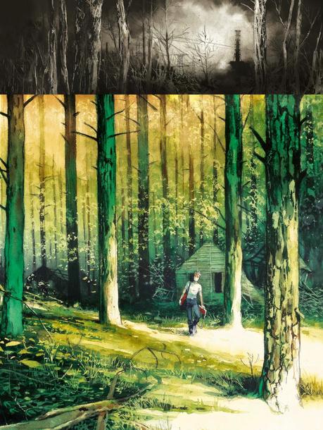 Si fuiste a EGB (lo digo por la edad, no porque dude de los contenidos en cultura general de los sistemas educativos posteriores…) sabes lo que es Chernóbil, o, por lo menos, sabes qué fue lo que ocurrió allí o, mejor dicho, crees saberlo, porque hay muchas cosas detrás de esta catástrofe humana y natural que no se saben y que no se sabrán jamás. Poco a poco nos han ido llegando retazos de lo que pasó, de las heroicidades y mezquindades, de los desastres que siguen salpicando toda Europa, de cosas tan sorprendentes como la evacuación de Pripiat… no sé, la verdad es que daría para mucho una historia con Chernóbil como tema, por eso siempre me acerco a quien me quiere contar algo sobre ello y por eso no lo dudé, me adentré sin pensarlo en los frondosos bosques casi fosforescentes que me ofrecía la portada y me sorprendí con mucho más de lo que imaginaba, algo así como lo que le ocurrió al propio Lepage en el proceso pre-creación de esta obra de arte hecha cómic.No hace falta que lo diga, el dibujo es, sencillamente, espectacular