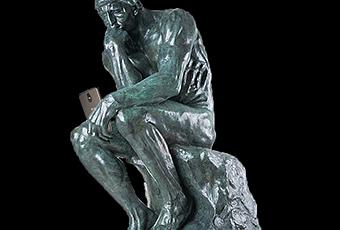 Esta imagen de un hombre inmerso en su móvil, pero cuyo cuerpo sugiere una gran capacidad de acción, se ha convertido en una de las esculturas más famosas de todos los tiempos.