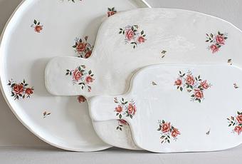 a hogar, tonos pastel, flores y craquelados son las señas de identidad, de una firma, Santa Rita que