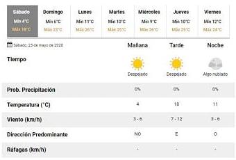 Según informa el Servicio Meteorológico Nacional (SMN), para la jornada de hoy se espera una mínima de 4° y una máxima de 18°.