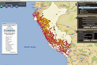 Vista del inventario de peligros geológicos en el Perú (Tomado de GEOCATMIN/INGEMMET)