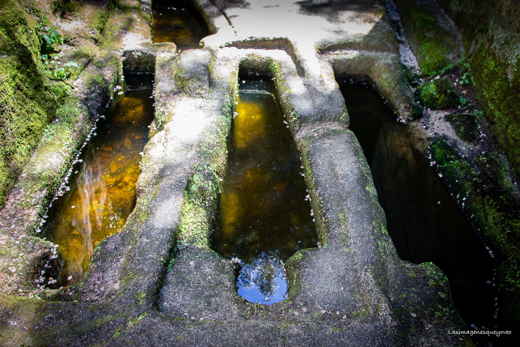 y otras dos laterales donde se encuentran tumbas antropomorfas. El verdín de las paredes, la roca al descubierto, la tenue luz que ilumina las tumbas... lo hacen un lugar impresionante, húmedo, frío y misterioso.
