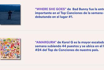 - “WHERE SHE GOES” de Bad Bunny fue la entrada más importante en el Top Canciones de la semana en Chile, debutando en el lugar #1.
