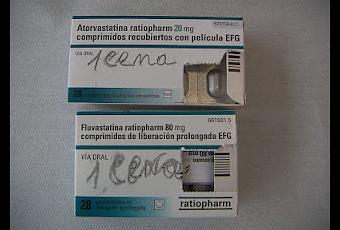 Pero también es importante no confundir como iguales los medicamentos diferentes. Para ilustrar la facilidad para cometer un error, confundir una fluvastatina de 80 mg con una atorvastatina de 20 mg, adjunto la foto que me ha enviado una compañera. Sin embargo bastaba con leer las cajas para no equivocarse. ¿Qué ha ocurrido entonces? Una respuesta probable es que hayamos llegado a un punto de confusión en el que los pacientes no leen las cajas y se basan en su aspecto, en sus colores.