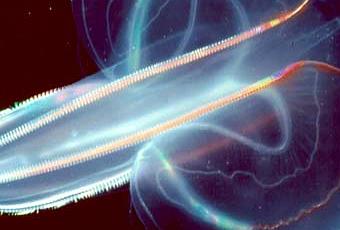 Los ctenóforos o tenóforos (Ctenophora, gr. "portadores de peines") son un filo de animales diblásticos caracterizados por la presencia de unas células especializadas, los coloblastos, que producen una sustancia pegajosa utilizada para capturar las presas. Son exclusivamente marinos y se han descrito 166 especies.[1] Aunque poco conocidos, son muy abundantes en los mares de todo el mundo constituyendo una elevada proporción de la biomasa del plancton. Algunos tienen apariencia parecida a medusas, motivo por el cual fueron agrupados con ellas en el antiguo filo de los celentéreos, y otros parecen gusanos aplanados en los fondos oceánicos (formas reptantes). Viven desde la superficie hasta 3.000 metros o más de profundidad