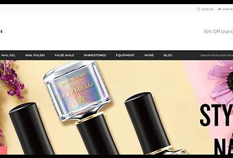 Se definen como una empresa que ofrece una amplia categoría de productos relacionados con el Nail Art: esmaltes de gel, esmaltes regulares (holográficos, térmicos...), adornos, glitter, pegatinas, uñas artificiales, placas de estampación, esmaltes para estampar, herramientas... Aquí os hago una captura de la página principal, para que veáis las categorías que tienen: