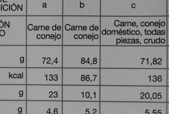 Viendo estas tablas de composición de nutrientes los expertos consideran la carne de conejo un alimento sano, imprescindible en una dieta variada y equilibrada Adecuada para todas las edades.